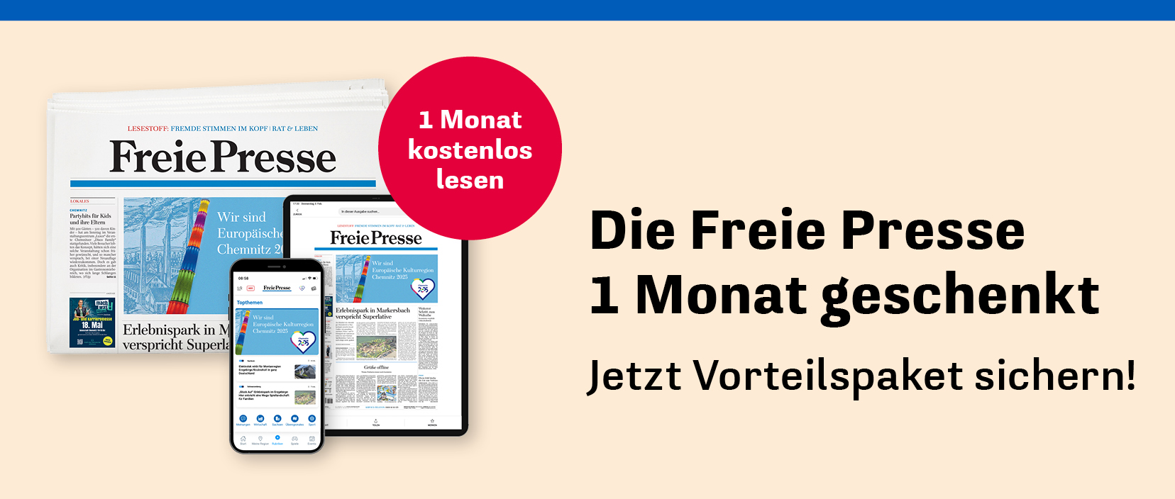 Ich möchte die Freie Presse 1 Monat kostenlos und anschließend für mindestens sechs Monate zum jeweils gültigen Vorteilspreis (derzeit monatlich 57,99 €, außerhalb des Verbreitungsgebietes der Freien Presse zzt. 75,99 €/Monat) lesen. Das Abonnement berechtigt Sie auch zur Nutzung der Freie Presse App inklusive digitaler Zeitung und von freiepresse.de einschließlich aller FP+ Artikel und kann erstmals mit einer Frist von 1 Monat zum Ablauf der Mindestbezugsdauer und danach jederzeit monatlich in Textform gekündigt werden.