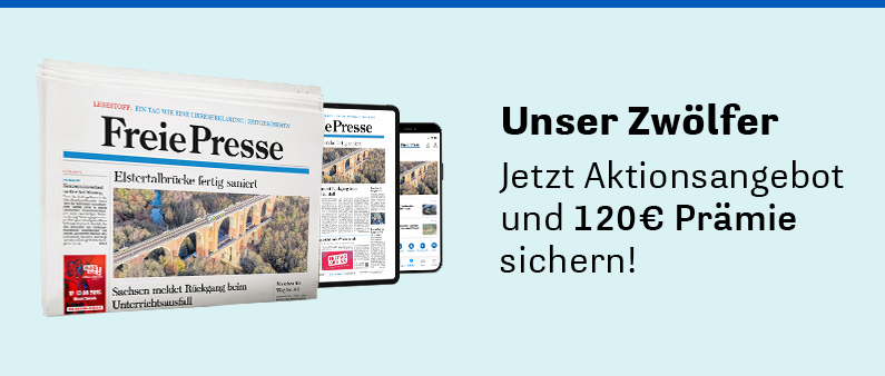 Ich bestelle die Freie Presse für mindestens 12 Monate zum jeweils gültigen Vorteilspreis (derzeit monatlich 57,99 € | außerhalb des Verbreitungsgebietes der Freien Presse zzt. 75,99 €/Monat). Das Abonnement berechtigt Sie auch zur Nutzung der Freie Presse App inklusive der digitalen Zeitung und von freiepresse.de einschließlich aller FP+ Artikel und kann erstmals mit einer Frist von 1 Monat zum Ablauf der Mindestbezugsdauer und danach jederzeit monatlich in Textform gekündigt werden.