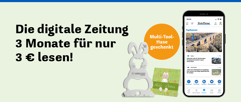 3 Monate nur 3€, danach 12 Monate 4,25/Woche, anschließend 6,75€/Woche, monatlich kündbar ([email protected]). Angebot nur für Kunden, die in den letzten 6 Monaten kein rabattiertes Digitalabo hatten. Das Ostergeschenk wird innerhalb von 2 Wochen nach Bestellung versendet.